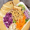 Chopped romaine topped with shredded red cabbage, carrot, cucumber, red onion, smoked tofu, crunchy cashews and crispy stix! Served with our creamy sesame ginger dressing served on the side. Salad is served with toasted pita bread upon request. ALLERGENS: SOY, WHEAT, SESAME