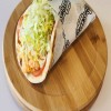 Brown Rice and Sweet Potato Veggie Burger, Tomatoes, Onions, Pickles, Shredded Cabbage, Vegan Mayo and Ketchup on Whole Wheat Wrap! ALLERGENS: WHEAT, SOY