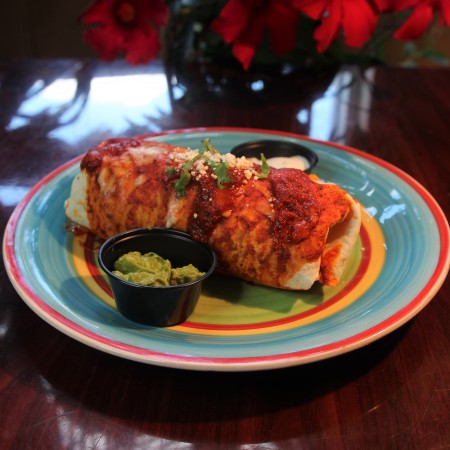 4 tacos containing chicken or beef, topped with green, red or mole sauce. Has lettuce, tomato, onion, avocado, sour cream and fresh cheese on top, served with a side of rice and beans.